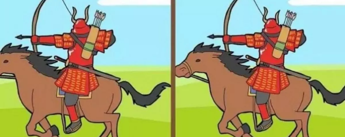 Na obrázku vyššie vidíte bojovníka na koni s lukom a šípom. Na prvý pohľad sa zdá, že obrázky sú totožné, ale v skutočnosti sú medzi nimi tri drobné rozdiely. Musíte ich nájsť v priebehu maximálne 18 sekúnd.