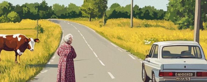 Na obrázku je teda auto idúce po ceste, krava pasúca sa na lúke a jej pani. Na tejto pokojnej vidieckej scéne nie je nič nezvyčajné, ale to len na prvý pohľad. Dokážete za 5 sekúnd povedať, čo je na tomto obrázku zlé?