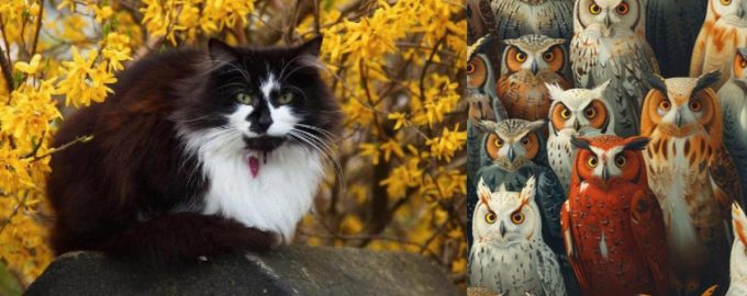 Môžete sa pokúsiť zvládnuť túto úlohu – za 6 sekúnd medzi fantastickými sovami musíte nájsť mačku, ktorú možno nazvať zradnou. Ak budete veľmi pozorní, možno sa vám podarí nájsť skrytú mačku s chvostom ešte rýchlejšie.