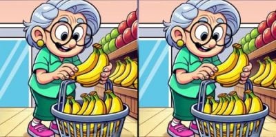 V ďalšej úlohe budete musieť nájsť tri rozdiely na ilustráciách, ktoré zobrazujú babičku vyberajúcu si banány v supermarkete, píše jagranjosh.