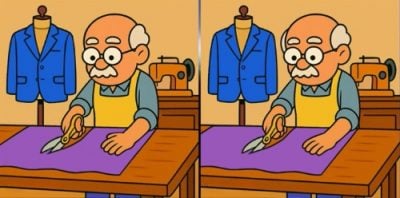 V ďalšej vizuálnej hádanke musíte nájsť tri rozdiely medzi dvoma ilustráciami, ktoré zobrazujú dedka zlodeja strihajúceho látku nožnicami, píše jagranjosh.