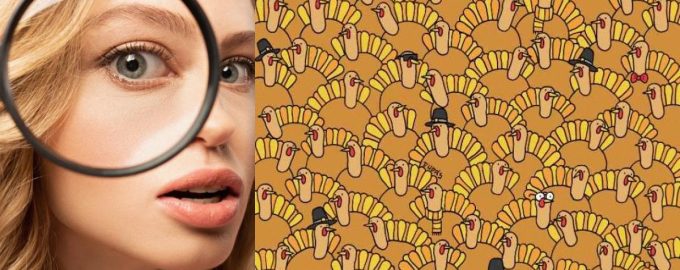 Pestrofarebný obrázok vás vyzýva, aby ste našli tekvicu ukrytú medzi moriakmi. Pozorne si obrázok prezrite a odhadnite, ako rýchlo dokážete na tomto obrázku objaviť tekvicu. Úloha bude ešte zaujímavejšia, ak si na nájdenie skrytého prvku dáte iba 7 sekúnd.