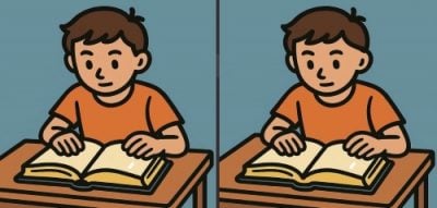Pozrite sa na dva obrázky chlapca, ktorý číta knihu. Na prvý pohľad sa zdá, že obrázky sú rovnaké, ale pozrite sa bližšie. Sú tu tri drobné rozdiely. Myslíte si, že ich všetky nájdete za 49 sekúnd? Uvidíme, akí ste bystrí!
